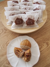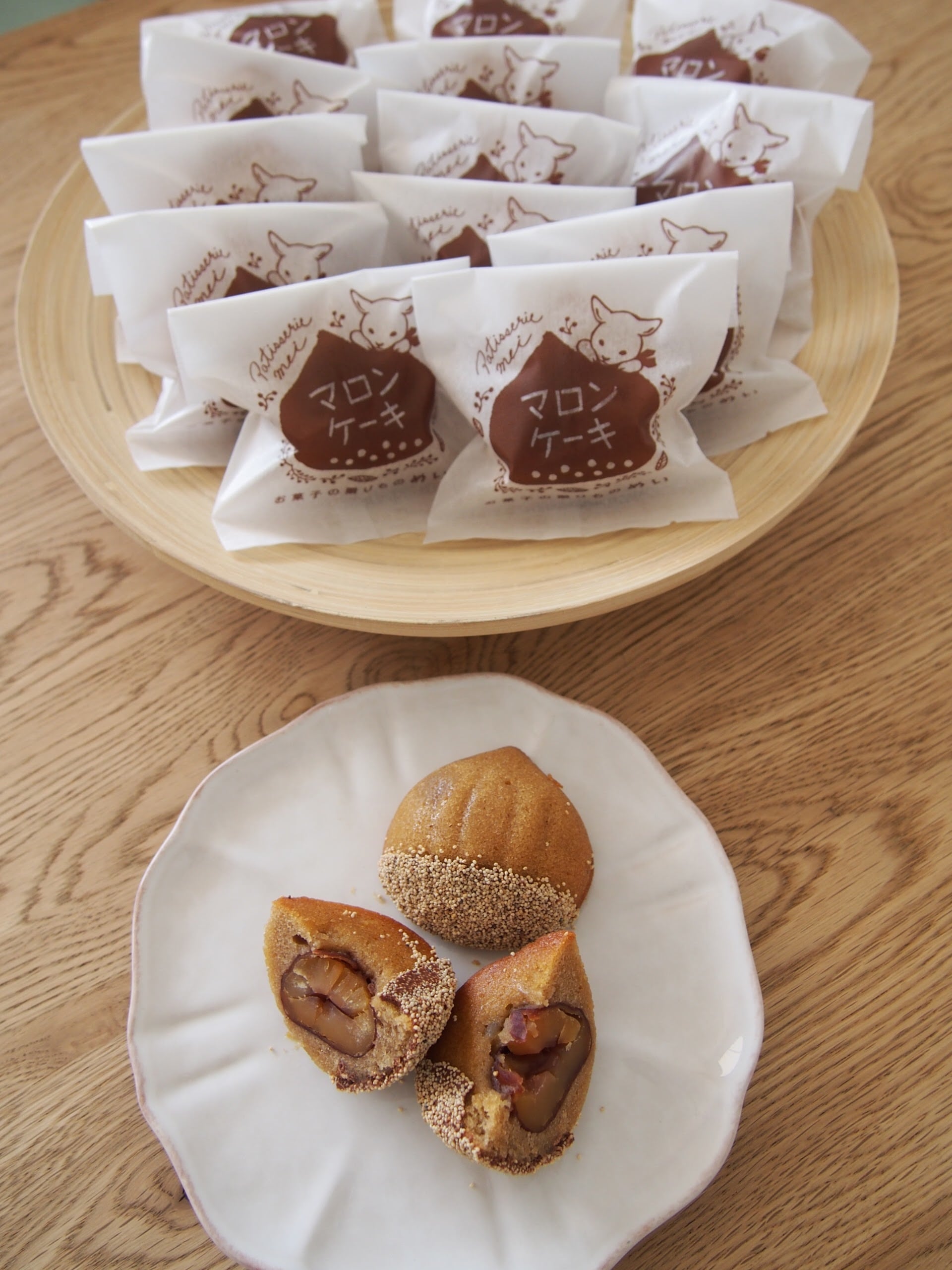 栗のペーストを生地にたっぷり練り込んで焼きました。中には渋皮付きマロンが入ってます。
